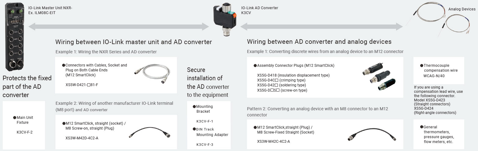 Until now, when connecting a controller inside a control panel to an analog sensor on the equipment side, it was necessary to run more cables than the number of sensors. By connecting the K3CV to an IO-Link master unit, the amount of wiring between the control panel and the equipment can be reduced.